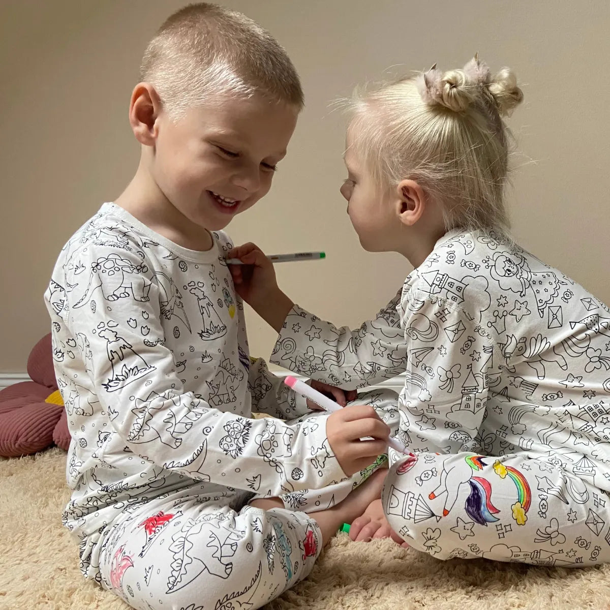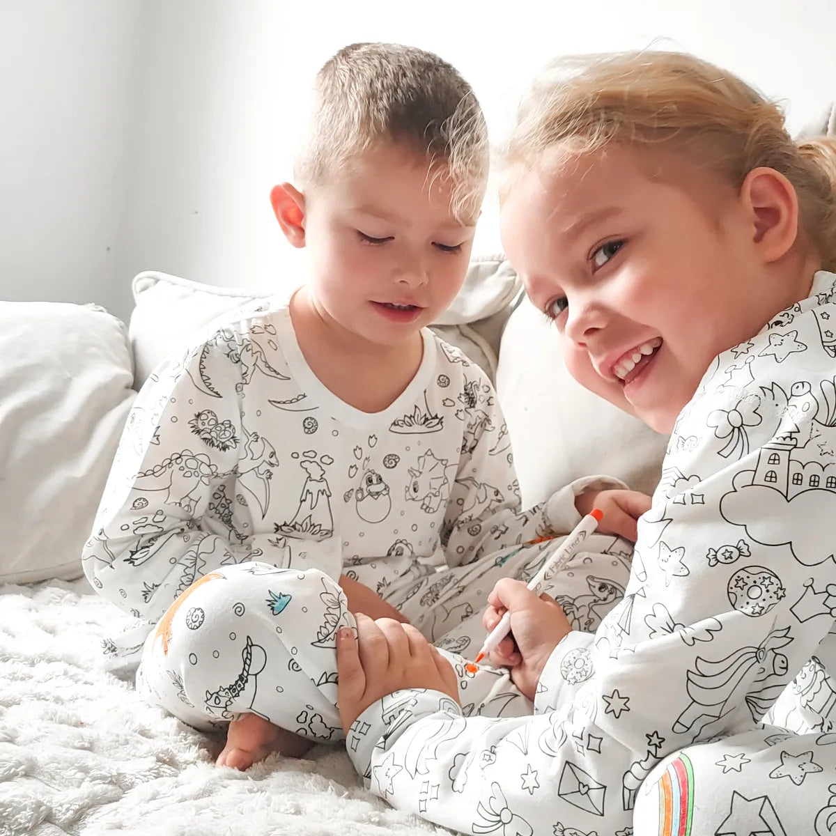 Il pigiama "Colorami" a due pezzi offre ore di creatività e divertimento, ed è una fantastica alternativa all’uso degli schermi.