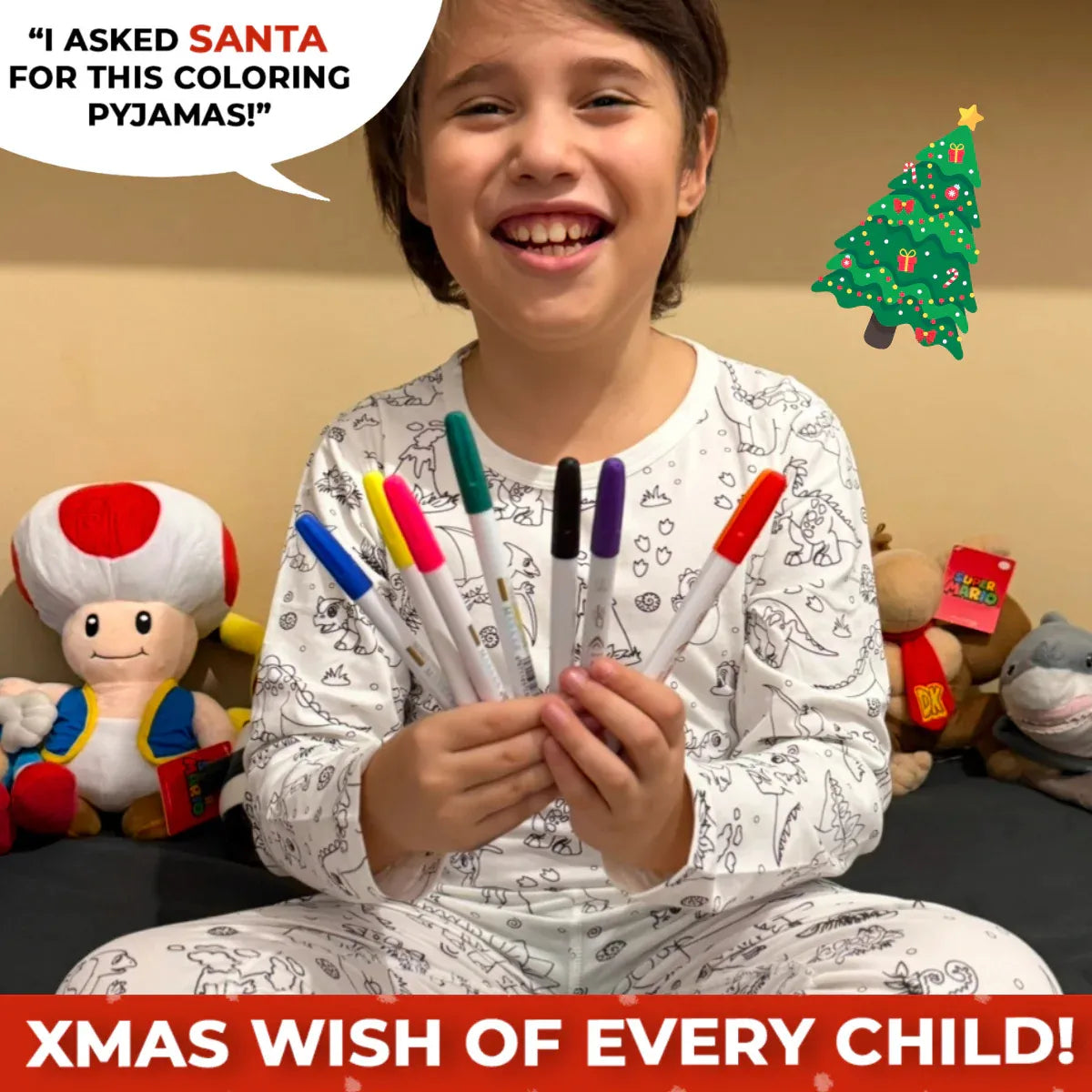 Colorare il proprio pigiama aiuta i bambini a sviluppare fiducia in sé stessi, stimola l’amore per l’arte e rafforza la fantasia.